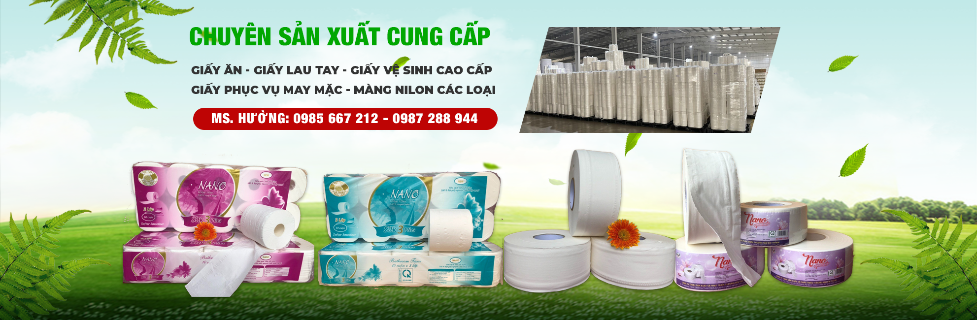 Là đơn vị sản xuất, nhập khẩu, phân phối giấy phục vụ sản xuất may mặc , giấy vệ sinh cuộn lớn, cuộn nhỏ, khăn giấy lau tay, Cuộn màng nilon , hộp đựng giấy cuộn lớn, hộp đựng nước rửa tay, giấy vệ sinh, khăn giấy, hộp đựng giấy lau tay,…